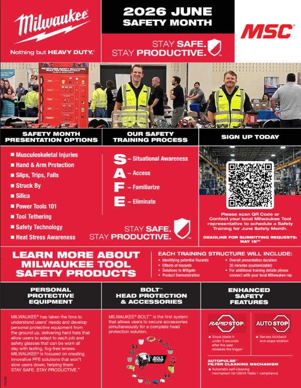 CURRENT PROMOTIONS FEB-MAY PROMO FLYER P1 E-REBATE PROMOTIONAL FLYER NEW! MSC EXCLUSIVE SELLER PROMOTIONS QUARTERLY SAFETY NEWSLETTER BUMP CAP FLYER TRANSPORTATION MAINTENANCE SOLUTIONS PACKOUT SOLUTIONS PACKOUT RACK SOLUTIONS CATALOGS & SOLUTIONS GUIDES VENDING SOLUTIONS GUIDE OUTDOOR POWER EQUIPMENT TAPS & DIES ONE-KEY SOLUTIONS HIGH DEXTERITY GLOVES PACKOUT SOLUTIONS GUIDE MECHANICS HAND TOOL TYPE II FULL BRIM HELMET CATALOG BOLT ACCESSORIES EMERGENCY PREP HEALTH & SAFETY CATALOG METALWORKING GUIDE JUNE SAFETY MONTH FASTENING GUIDE CONCRETE SOLUTIONS LIGHTING SOLUTIONS USA HAND TOOLS HOLE SAW GUIDE CLEAN-UP SOLUTIONS IMPACT SOCKETS HEATED GEAR
