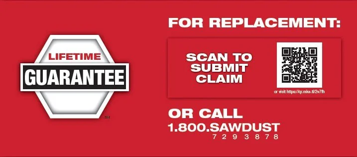 Every MILWAUKEE® product with a LIFETIME GUARANTEE is replaceable upon failure over the entire life of the product, excluding misuse & abuse as determined by MILWAUKEE. Please submit the Submission Form including a photo, part number, and shipping information.