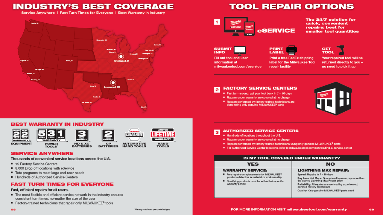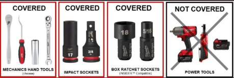 The Milwaukee Tool Lifetime Guarantee covers Milwaukee Mechanics Hand Tools, Pliers and Screwdrivers (USA), Shockwave Impact Duty™Sockets, and INSIDER™ Box Ratchet Sockets.