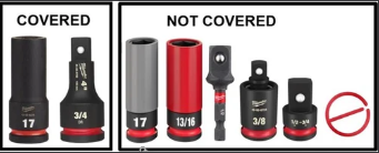 Items that are NOT covered include: lug nut wheel sockets, socket adapters, reducers, universal joints and retaining rings.